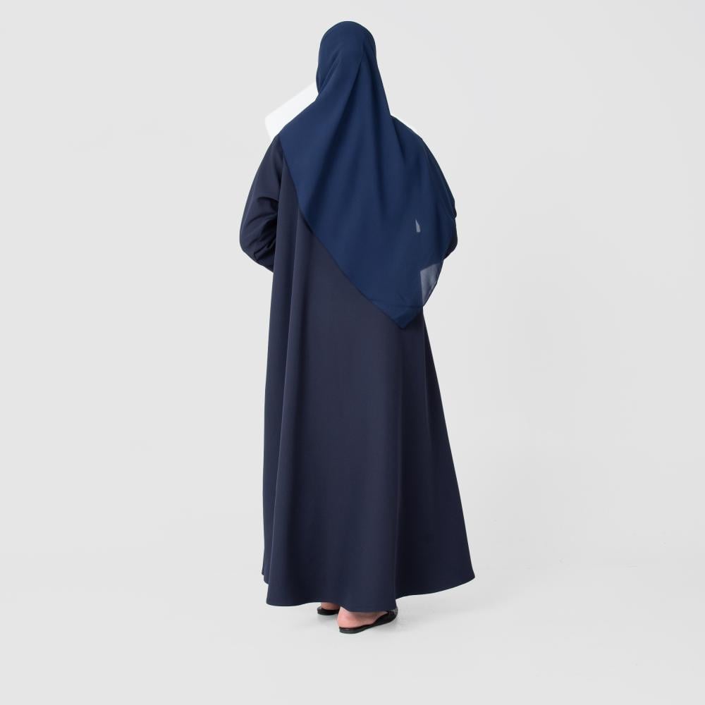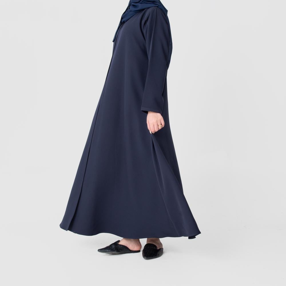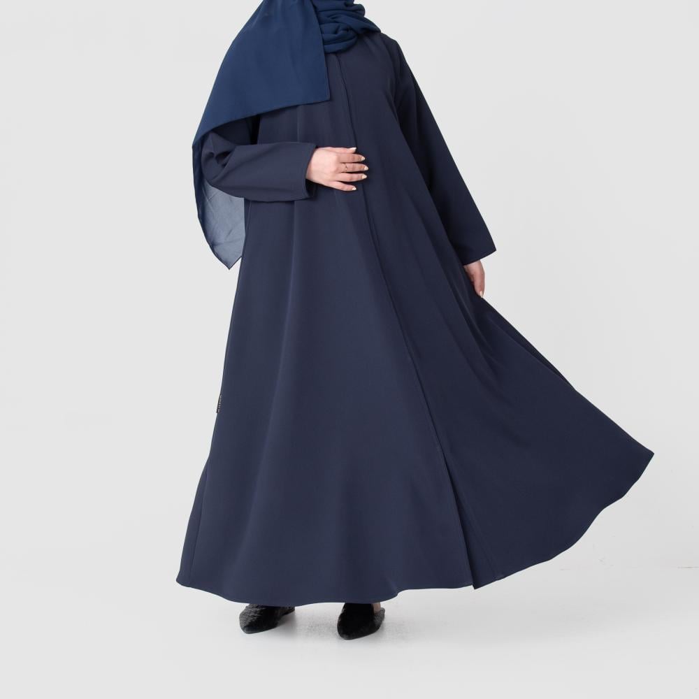 عباية مصنوعة من قماش الكريب الناعم بلون كحلي جذاب يعكس الرقي والهدوء.