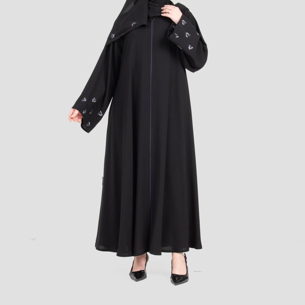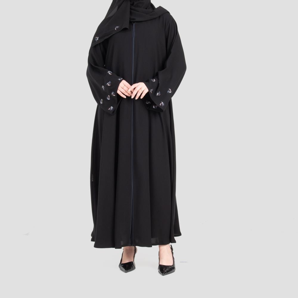 عباية كلوش أنيقة مصنوعة من قماش الكريب الفاخر، بتصميم واسع وانسيابي يمنح إطلالة راقية ومريحة. تمتاز بتطريز ناعم على الأكمام المربعة يضفي لمسة أنوثة وفخامة، لتناسب الإطلالات الرسمية والمناسبات الراقية بكل تميز وأناقة.