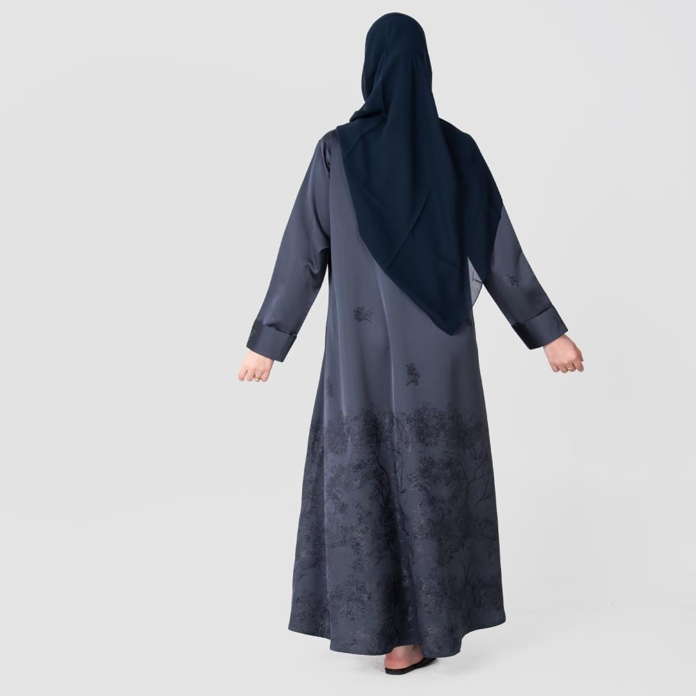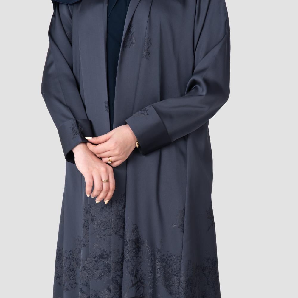 عباية لف حريرية ناعمة باللون كحلي فاتح وتطريز أنيق