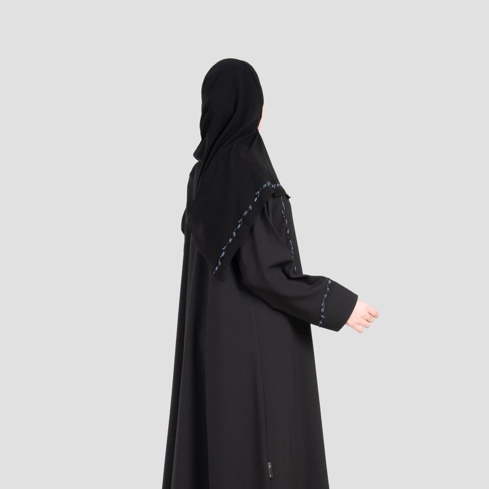 عباية مصنوعة من قماش الكريب الفوه الفاخر، بملمسه الناعم وانسيابيته الراقية التي تمنحك حضورًا أنثويًا مميزًا. تتزين بتطريز أنيق من الأمام والأكمام، مصمم بعناية ليبرز جمال القصة ويضيف لمسة ملكية متقنة دون مبالغة. التطريز ينسجم مع نعومة القماش ليخلق توازنًا بين الفخامة والبساطة، مما يجعل العباية مثالية للمناسبات الخاصة أو الإطلالات اليومية التي تتطلب أناقة هادئة. تصميم يليق بالذوق الرفيع ويعكس شخصية المرأة التي تختار التميز في كل تفاصيلها.