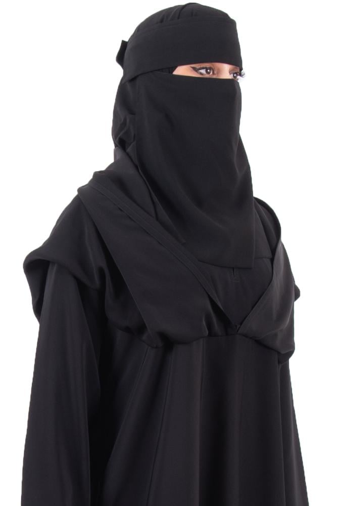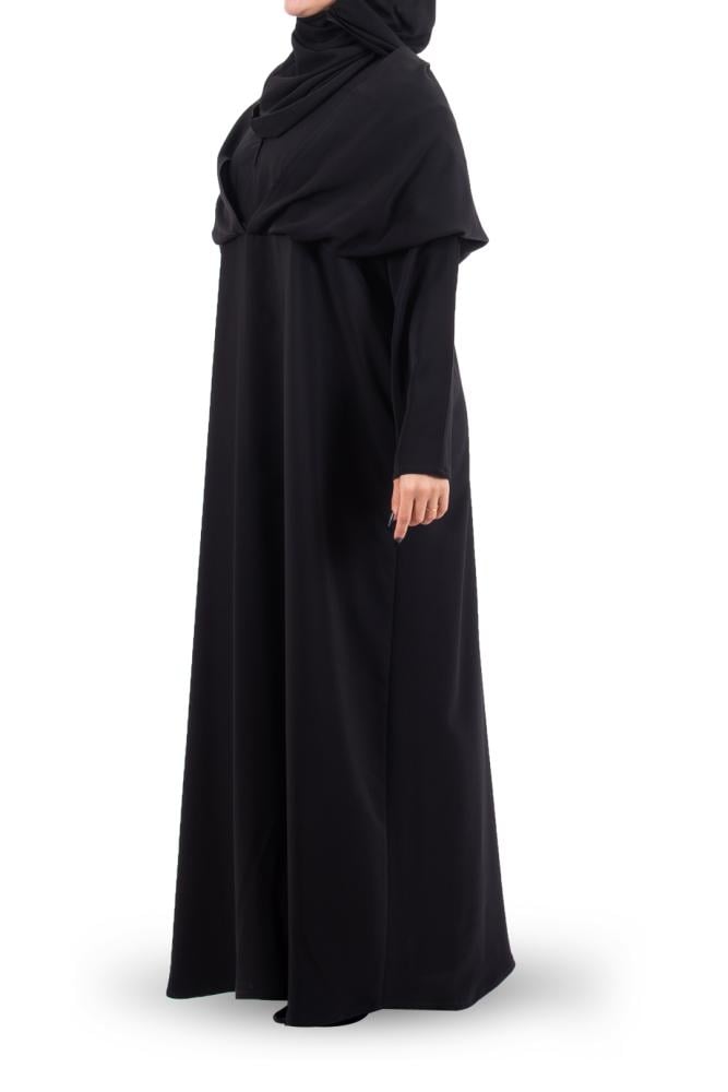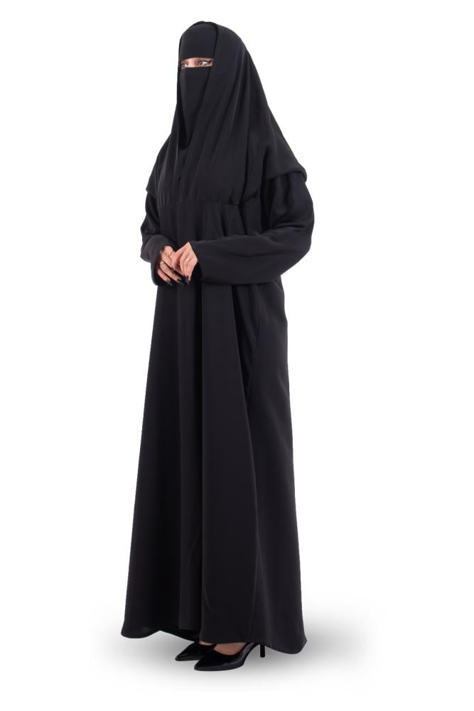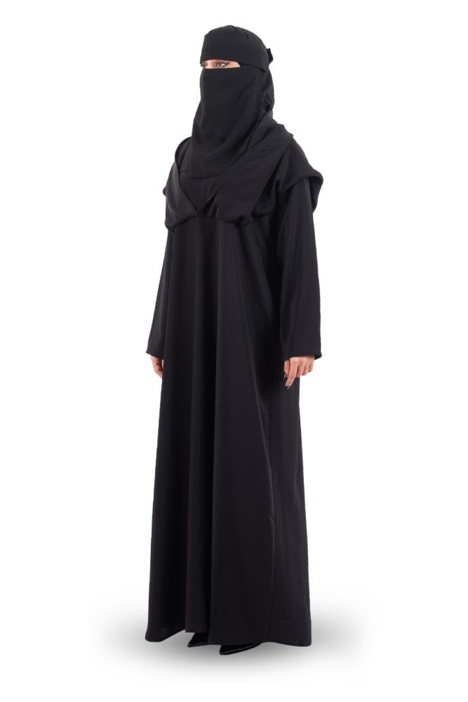 عباية راس كتف سادة من قماش الحرير الناعمالقفلة مسكر وزرار واحد في الاعلىالكم عادياللون اسود(لا يوجد طرحة)